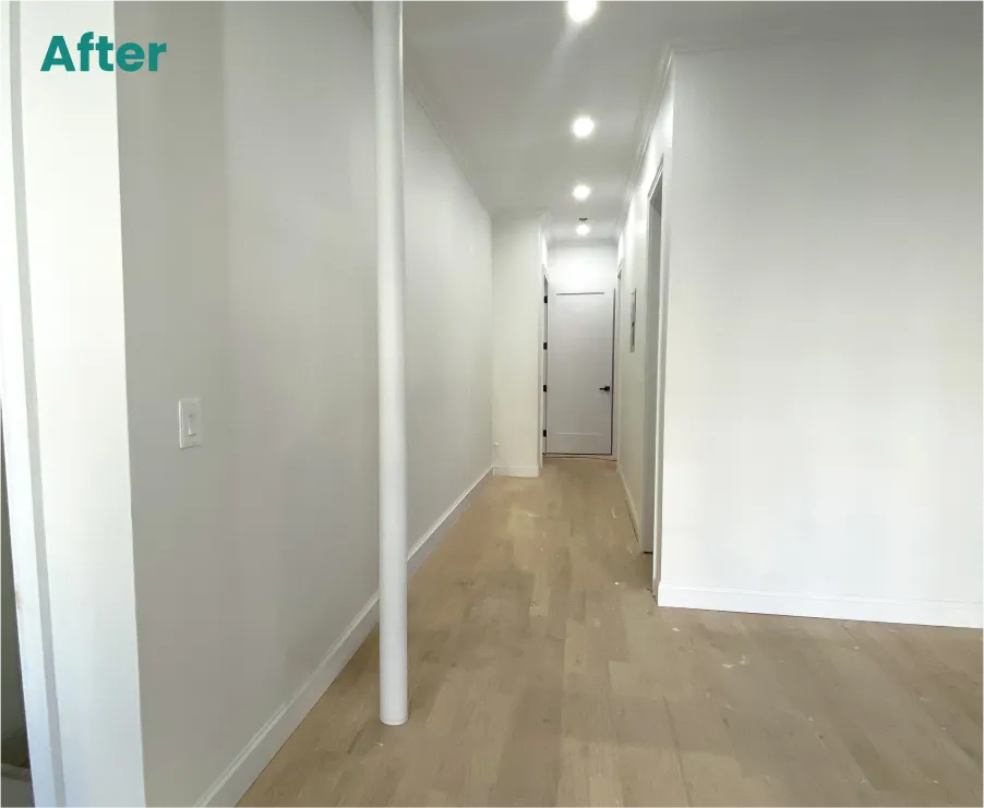 Project Scope: The scope included new structural beams, a large glass window for natural light, wood floor replacement, and full bathroom gut-renovation.