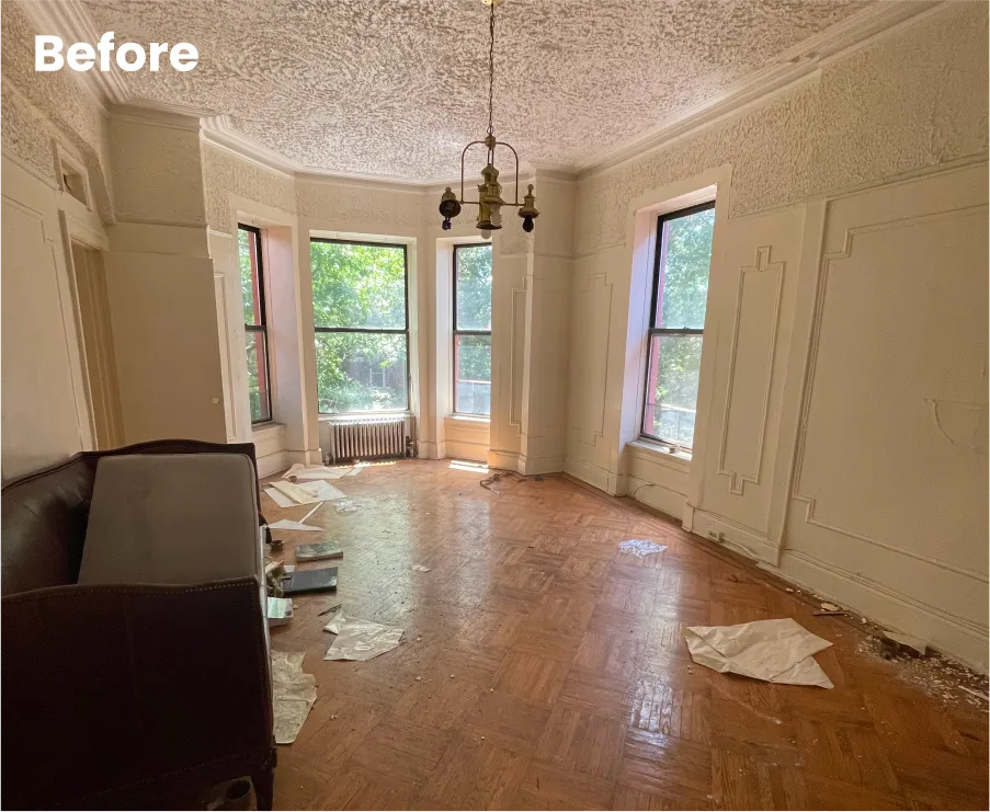 Project Overview: The residential renovation project at 73 Macon Street required a full gut demolition and renovation, transforming the property from a 3-family to a 2-family high-class residence.